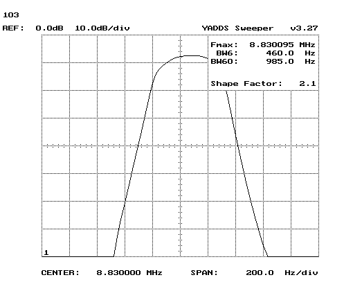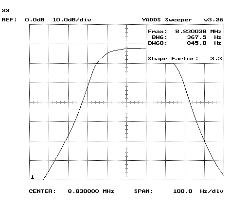 АЧХ Inrad фильтра с полосой пропускания 400 Гц (по уровню 6dB)