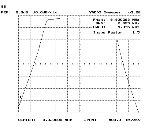 АЧХ Inrad фильтра с полосой пропускания 2800 Гц (по уровню 6dB)
